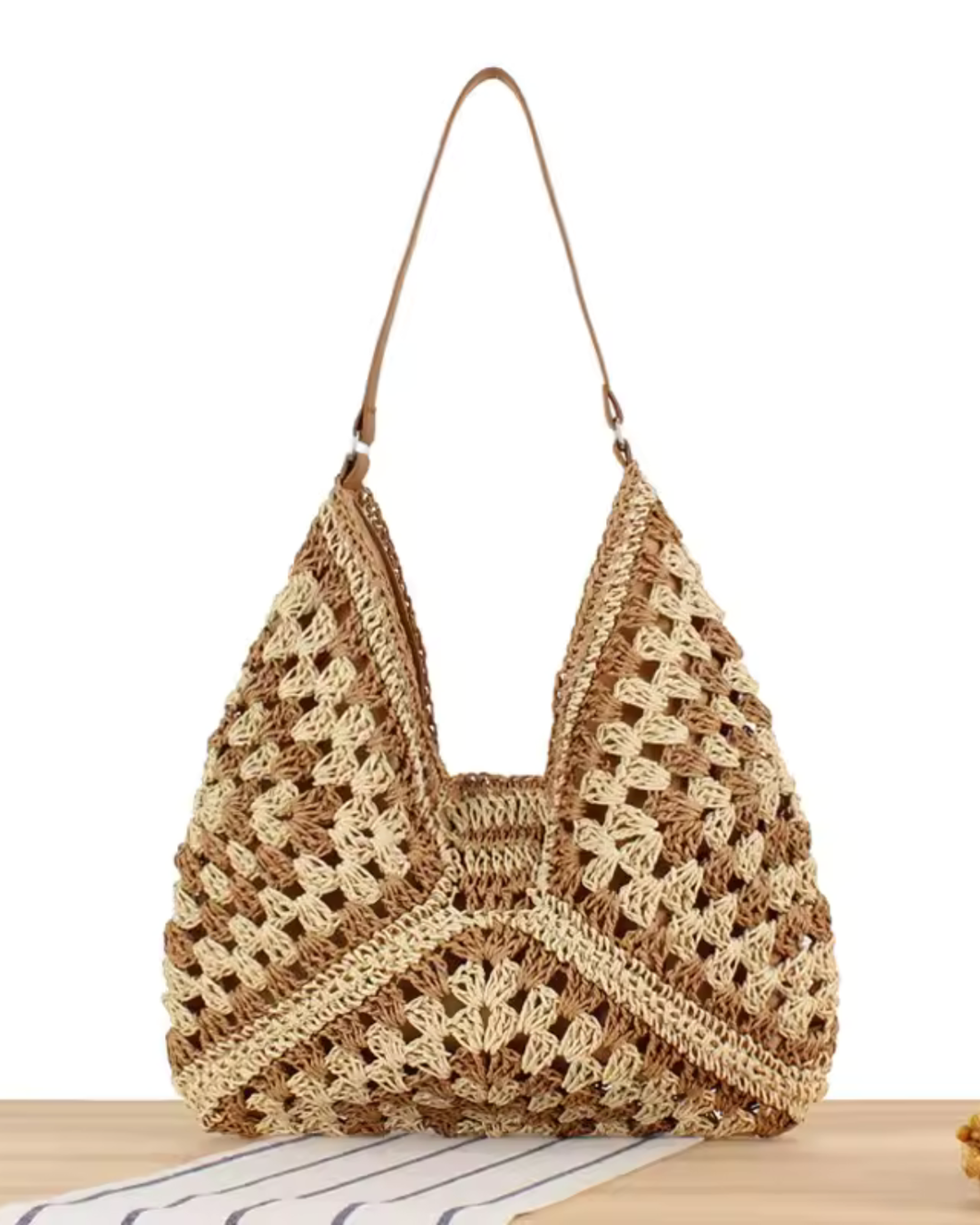 Boho Style Crochet Tote Bag with Tassel for Women