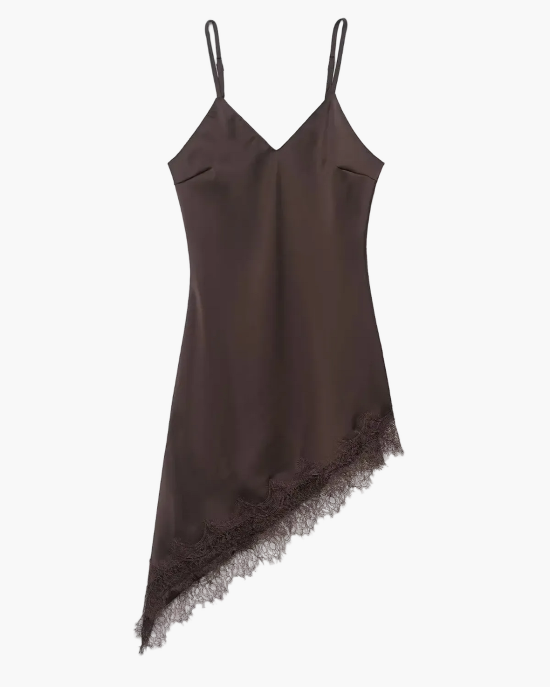 This backless satin dress with an asymmetric lace hem for women is designed for those...