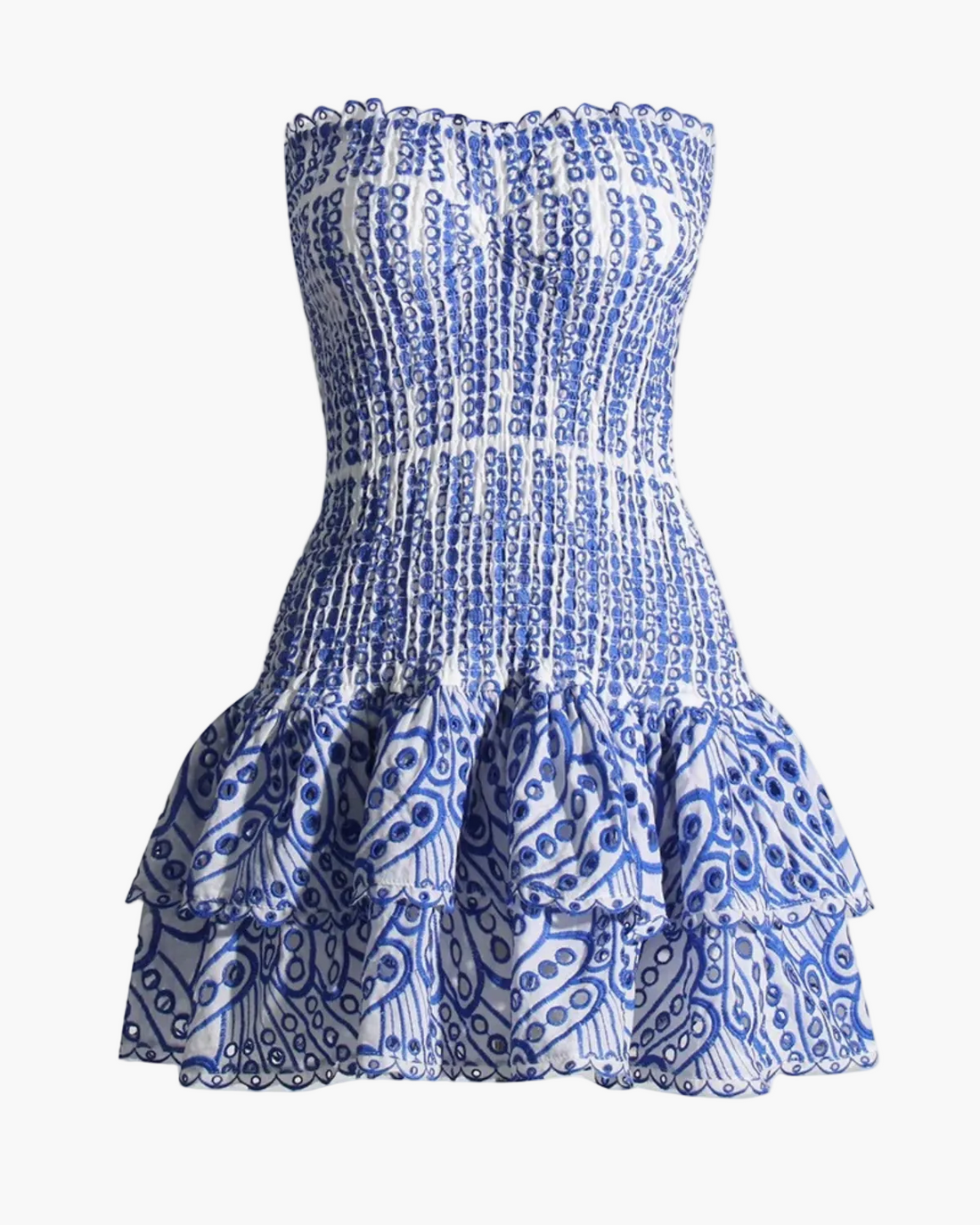 Embroidered Strapless Summer Dress with Ruffle Hem for Women