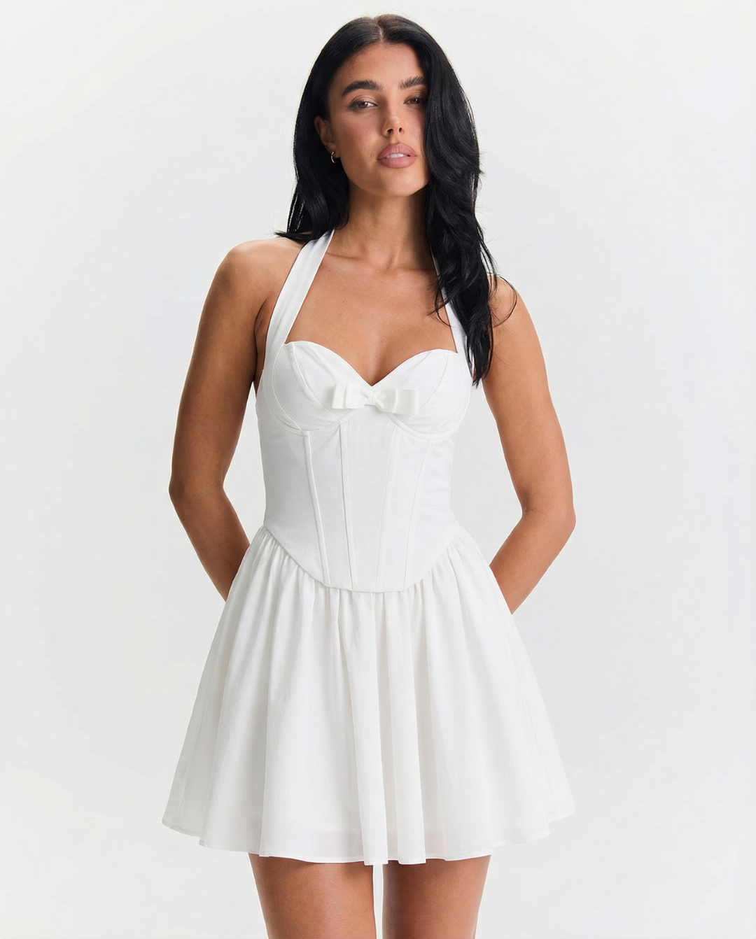 Flared Halter Mini Dress with Corset Bodice for Women