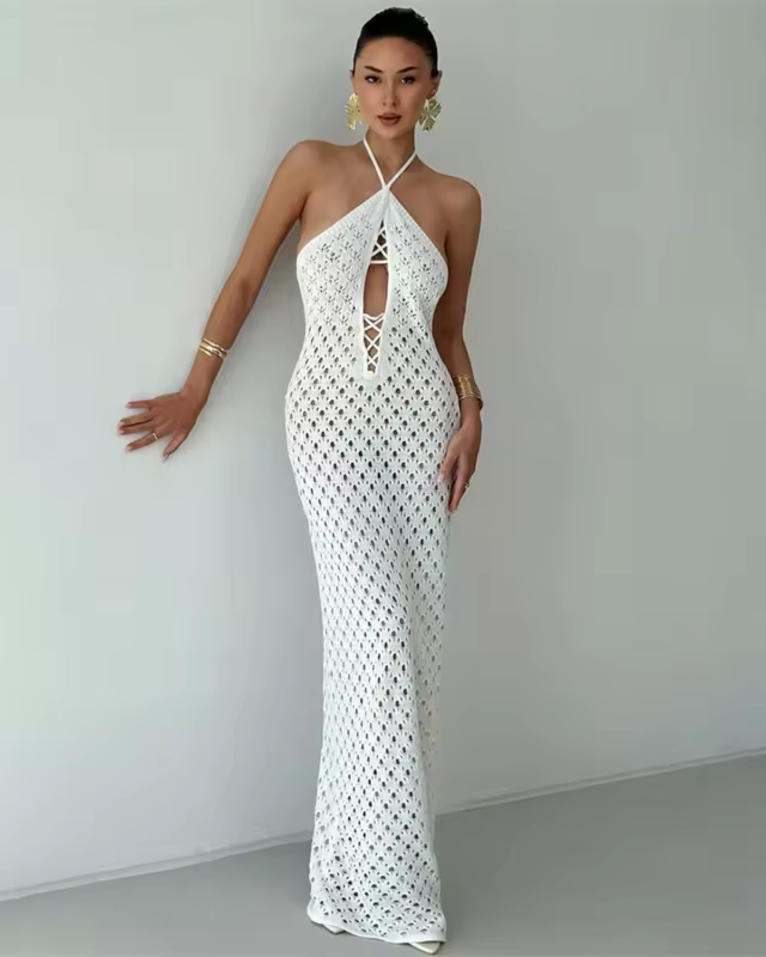 Crochet Halter Cut-Out Maxi Dress for Women