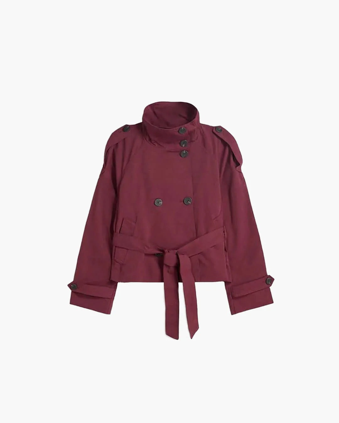Belted Cropped Trench Coat with High Neck for Women