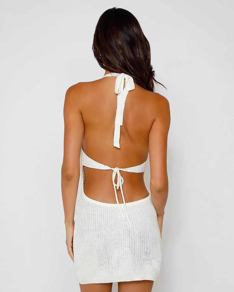 Crochet Halter Neck Mini Dress for Women