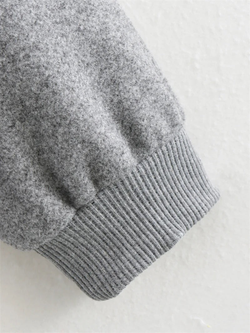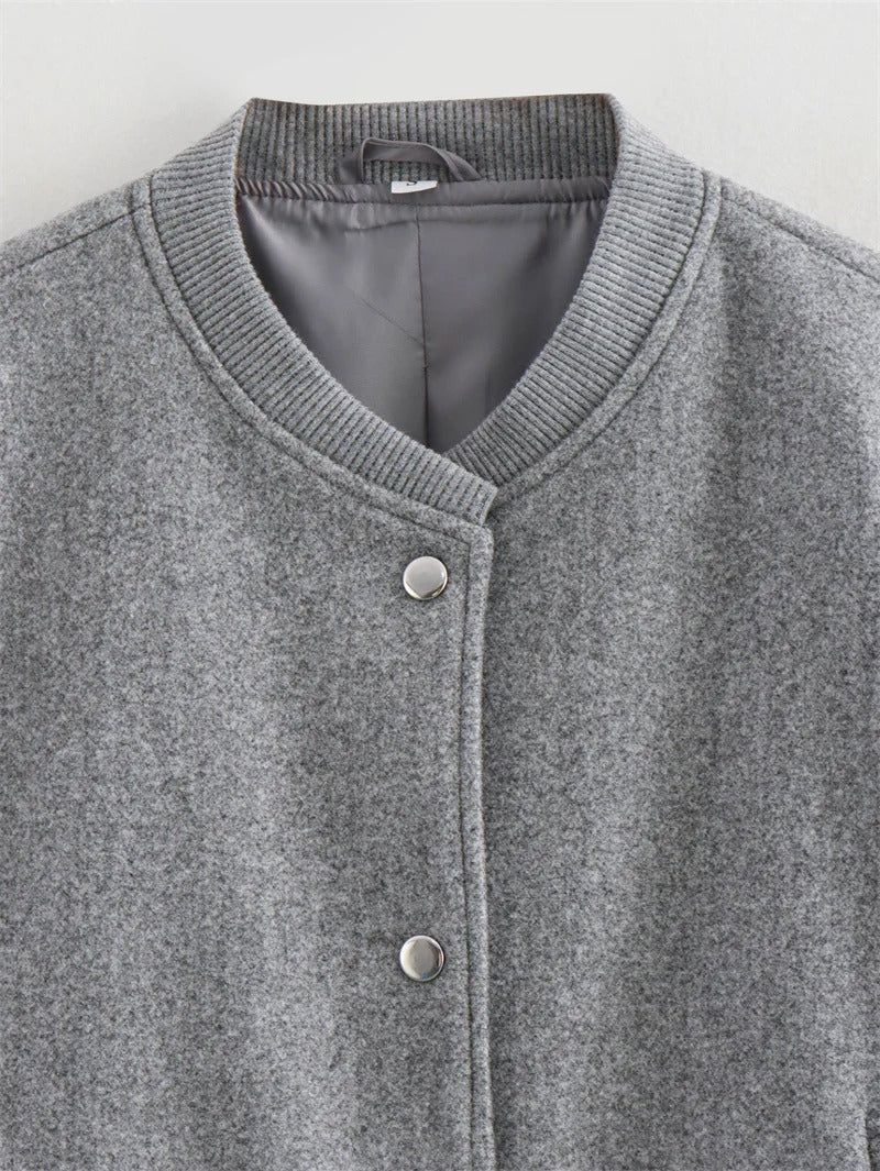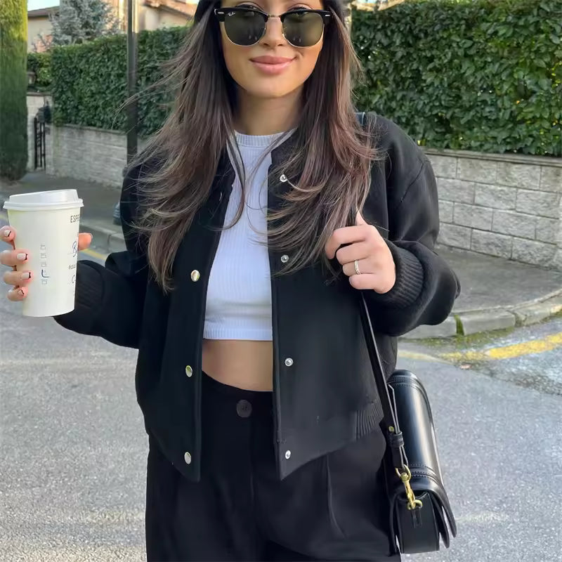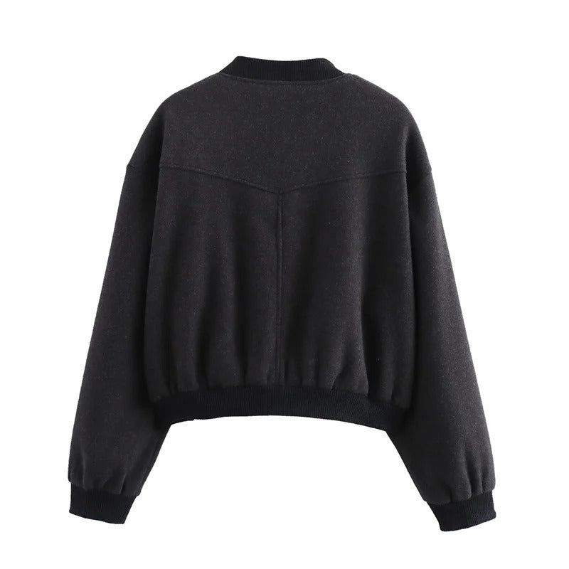 Cropped Ribbed Trim Bomber Jacket for Women