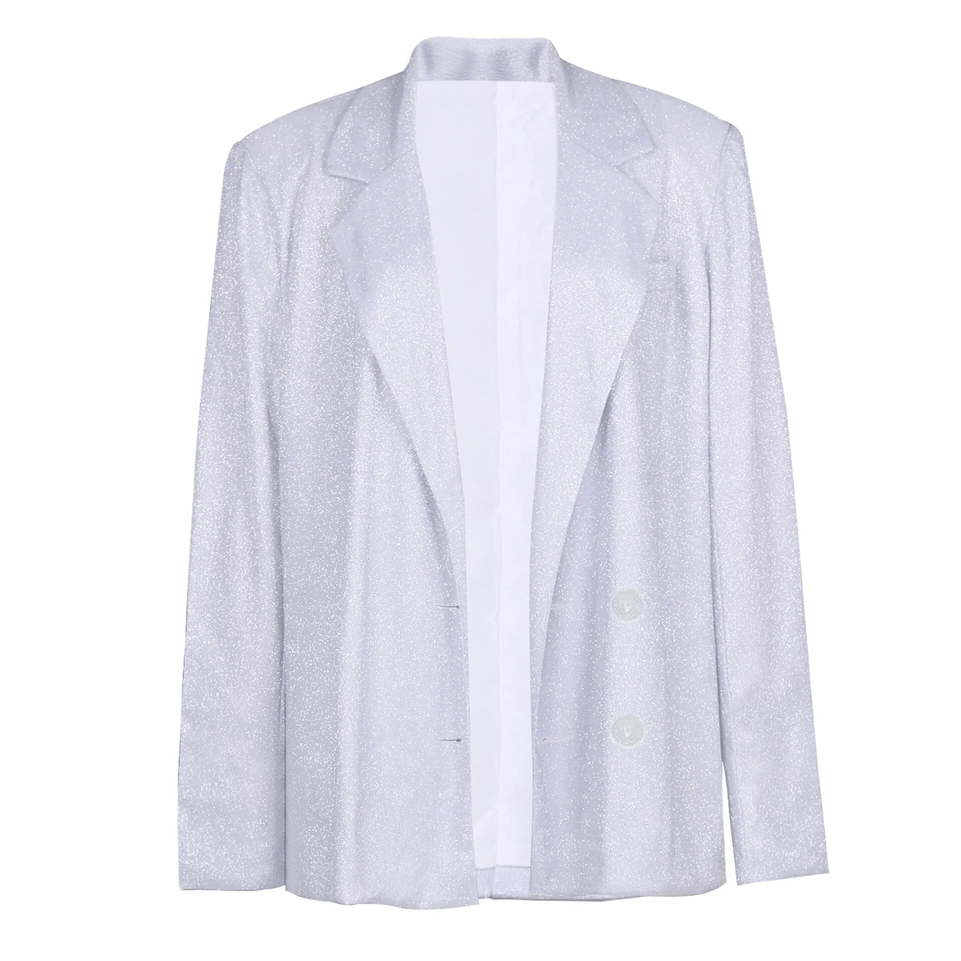 This glamorous three-piece set is designed for women who want a dazzling, coordinated look for festive celebrations and evening parties. The set includes a bralette, wide leg trousers, and a blazer, all featuring an all-over glitter finish for maximum shine. This ensemble offers an effortless, high-impact silhouette that is perfect for making a statement during the party season.